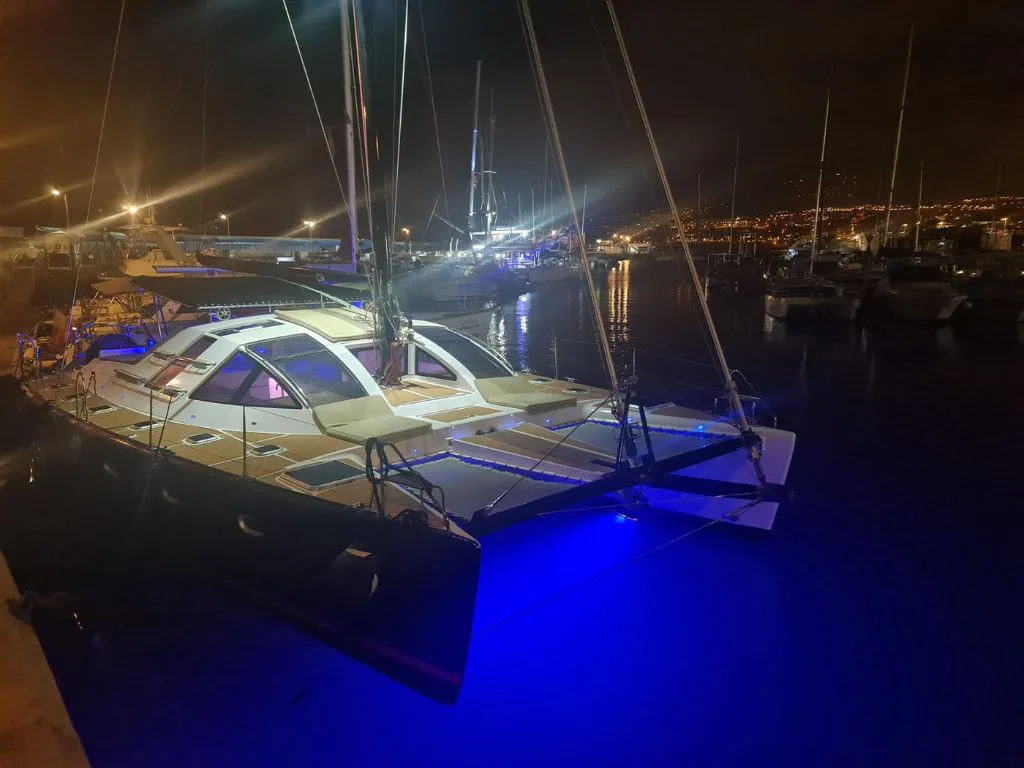 Questo catamarano a vela ha una capacità di 12 persone, ideale per navigare le acque in modo intimo.